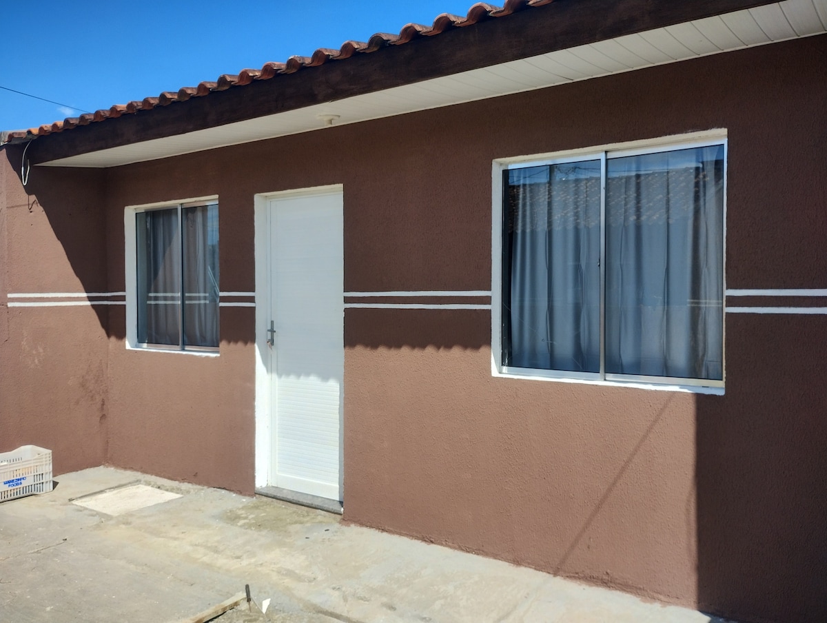Fica a 1 quadra da praia. Com sala/cozinha (bicama) + 1 quarto (suíte, cama de casal), tem todo conforto para o hóspede economizar $ e cozinhar no local (fogão, geladeira e utensílios domésticos, churrasqueira e lavanderia externa). Acomoda até 4 pessoas. Fica nos fundos da minha casa, possui portão divisorio entre as casas. É permitido pets, desde que dóceis. O carro deve ficar estacionado paralelo à rua (vizinhança tranquila). Avisar sobre checkin após as 21h, pois serão avaliados .