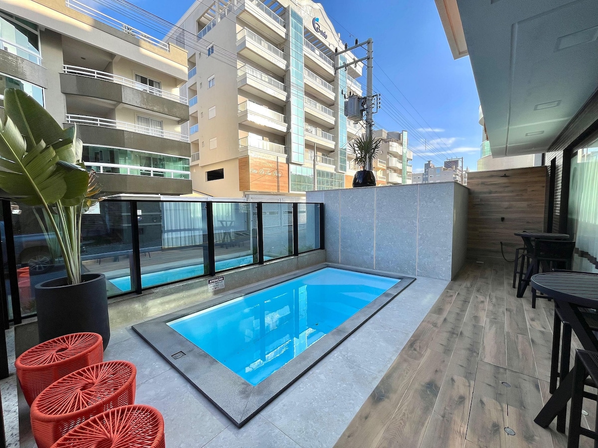 Uma estadia sofisticada e completa , ideal para férias em família ou em casal. Possui uma vaga individual coberta para carros de médio porte, garantindo segurança e praticidade para quem chega de carro. O edifício oferece uma academia totalmente equipada, sala de jogos, piscina aquecida, piscina com vista para a praia de Bombas.