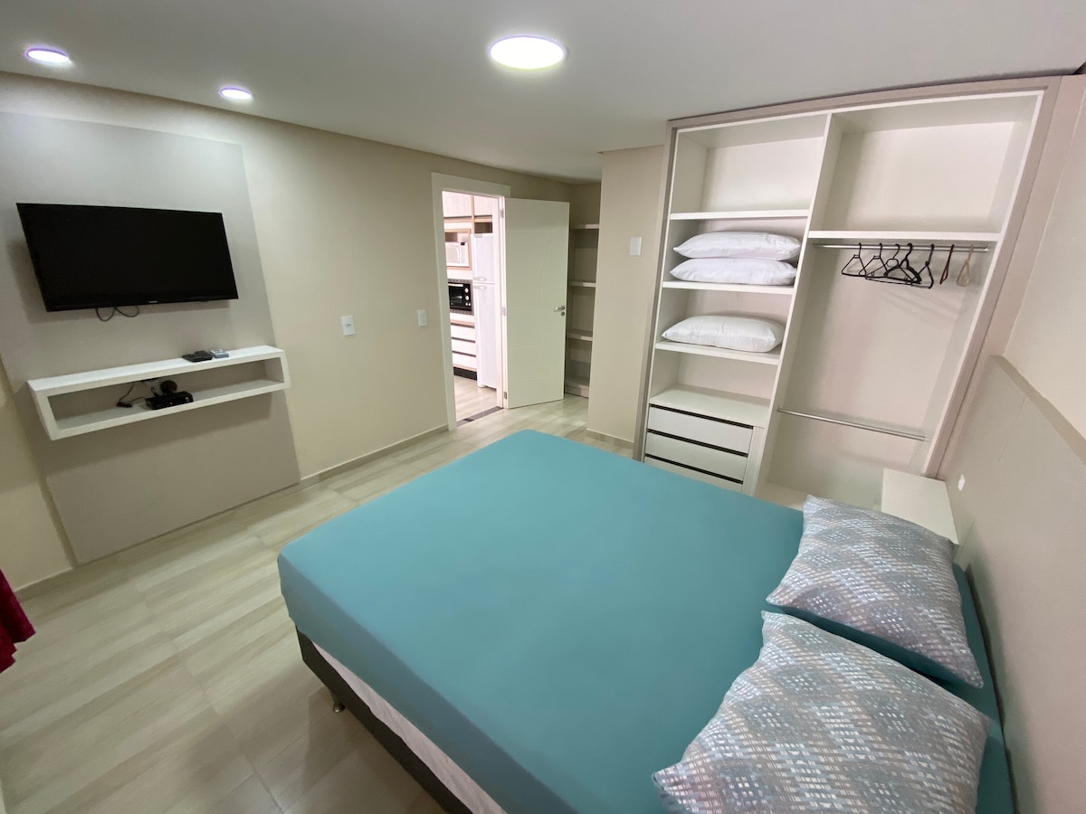 O Studio é perfeito para casais que querem relaxar na praia! Muito aconchegante e preparado para o seu bem-estar! Contam com roupa de cama e banho cheirosinha, ar-condicionado, smart TV, chuveiro a gás e churrasqueira individual! Além disso possui cozinha completa com utensílios e bancada de preparo. Oferecemos estacionamento, internet wifi. Estamos localizados em Bombas e a 450m do mar! Neste apto não é permitido mais que 2 pessoas, caso tenha BEBÊ/CRIANÇA temos outra opção, nos consulte.