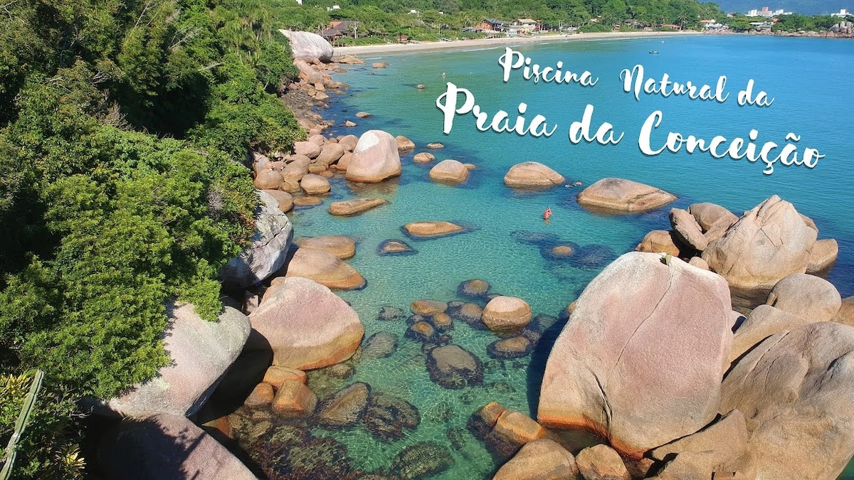 Nossa propriedade é perto de belas praias, restaurantes, supermercados, farmácias e padaria. As praias do Costão das Vieiras são de águas limpas, perfeitas para um bom banho de mar. * Tome seu café da manhã na varanda, olhando para o mar. Será inesquecível! * Há um amplo jardim para descanso ou caminhadas. * A casa está a poucos passos dos jardins e da praia. O acesso a eles se dá por uma escada com degraus de pedra. * Despertem de manhã ao som das ondas do mar e do cantar dos passarinhos.