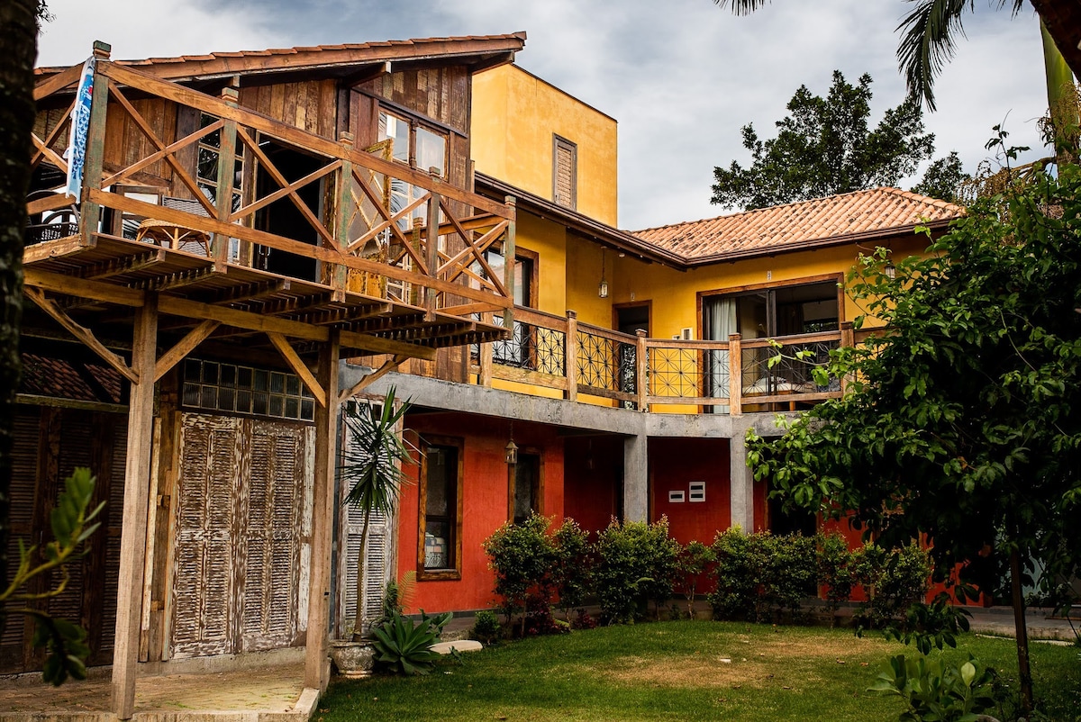 Relaxe neste espaço calmo, rodeado pela natureza e cheio de estilo! Por aqui tem muita natureza e diversas praias ao derredor. Temos espaços externos para compartilhar bons momentos com novos amigos, fogueira em noites de lua cheia, tranquilidade nas nossas redes e um quintal com vista pra belos locais verdes. Costumamos dizer que recebemos hóspedes e nos despedimos de amigos. *Compartilhamos o café da manhã com os hóspedes*