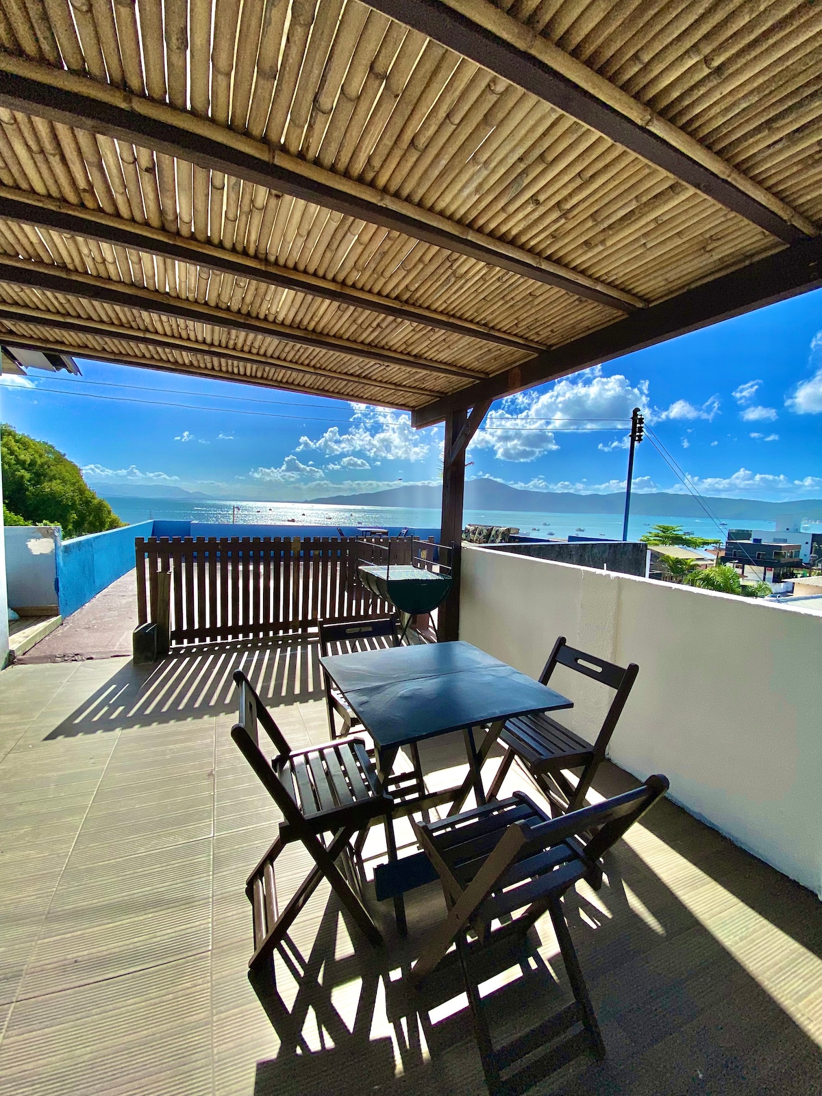 @ casablancabombinhas Apartamento Terraço com vista 180º Espaço de uso PRIVATIVO, a 2min A PÉ da praia! Adicione uma deliciosa cesta de café da manhã para melhorar a experiência (valor adicional de R$30/pessoa) Quarto 1: cama de casal + AC. Quarto 2: cama de casal com TV a cabo + AC Todos quartos com vista para o mar 01 banheiro completo Cozinha com todos utensílios Wi-Fi e varanda PRIVATIVA com churrasqueira e vista para os dois mares, desfrutando do NASCER & PÔR do sol.
