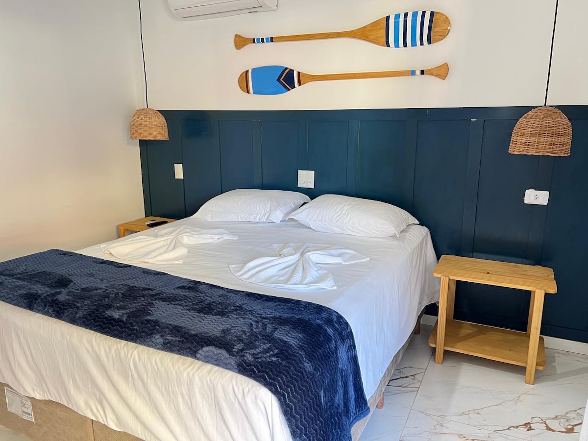 Desfrute do melhor de Bombinhas em suítes à beira-mar, com localização privilegiada e vista encantadora para o oceano. As suítes oferecem conforto, praticidade e um ambiente acolhedor, ideais para quem busca descanso e momentos inesquecíveis. Totalmente equipadas, contam com cama confortável, ar-condicionado, Wi-Fi, TV e banheiro privativo, garantindo uma estadia tranquila. A poucos passos da areia, você acorda com o som do mar e aproveita dias de lazer sem precisar de carro.