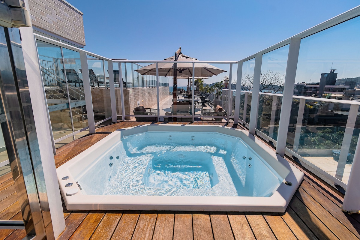 Elegance Flats - um dos edifícios mais completos e modernos de Bombinhas 2 maravilhosas piscinas aquecidas, sendo que 1 totalmente fechada - perfeita para uso no inverno. 2 banheiras de hidromassagem aquecidas. Locação inverno e verão.