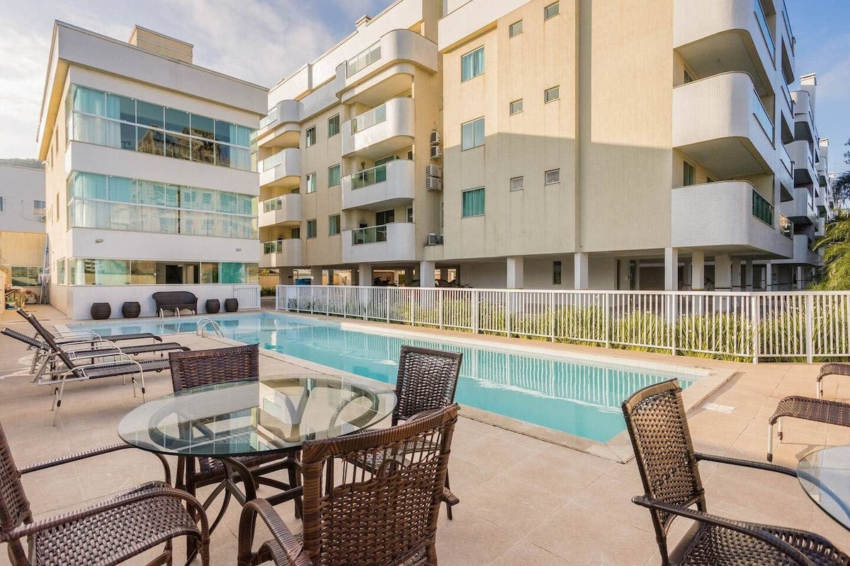 Apartamento luxuoso em condomínio alto padrão com área de lazer com piscina e apenas 120 metros do mar!!! Perfeito para uma familía com filhos, possui 2 dormitórios com A/C e Tv´s smart com móveis sob medida. Vaga de garagem para um carro e Wfi disponível. Excelente localização apenas 120 metros da praia de Bombas, alguns metros de restaurantes, mercados, comércios, farmácias, sorveterias, ciclovia e muito mais...