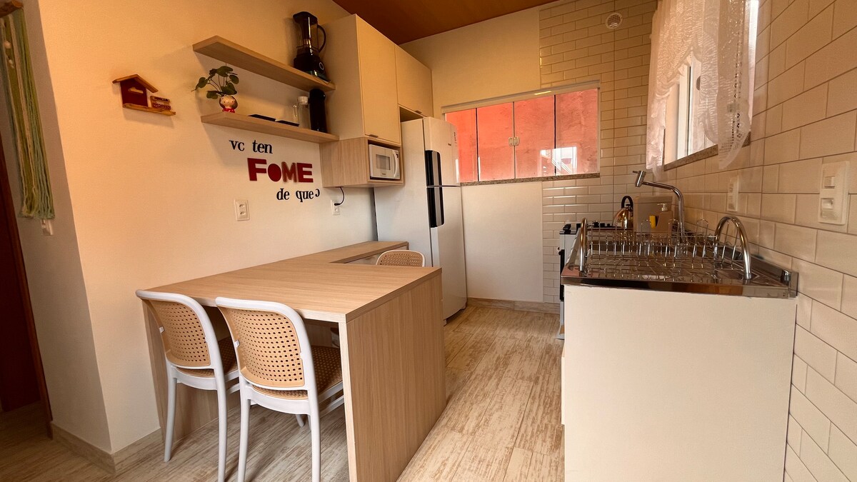 A casa é ideal para família pequena ou amigos Vocês estarão com total conforto, a casa está localizada no centro da praia de Bombinhas, a menos de 100 metros da praia, perto de supermercados, famácias e restaurantes. Acomoda até 2 pessoas, 1 dormitório suíte com ar condicionador e cozinha completa com todos os utensílios.