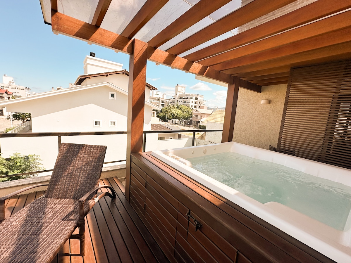Beautiful penthouse with private Jacuzzi. You'll be on Central Avenue, close to everything!! ➢ Crossing the street, you'll be on Bombinhas Beach!➢ Best Condominium Resort with Swimming Pool, Jacuzzi and Fitness Center.➢ Pets are welcome! *see our rules➢ Penthouse with barbecue and amazing view!➢ Count on two parking spaces available for you!Did you like it? Add to your wishlist by clicking ❤ on th