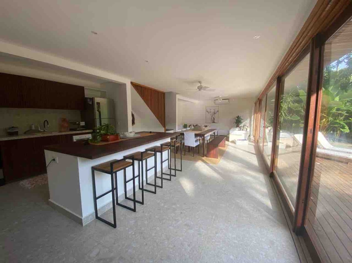 Casa recém construída, espaçosa e pertinho da praia. São 3 suites espaçosas no andar superior e um dormitório de apoio semi suíte no térreo! Com área gourmet, piscina linda com prainha, amplo deck para receber os amigos e com proteções para as crianças, sala e cozinha integrada que se estende a área gourmet! Estar externo confortável com ventiladores e todos os cômodos da casa com ar condicionado. A casa fica a 2minutos a pé da praia
