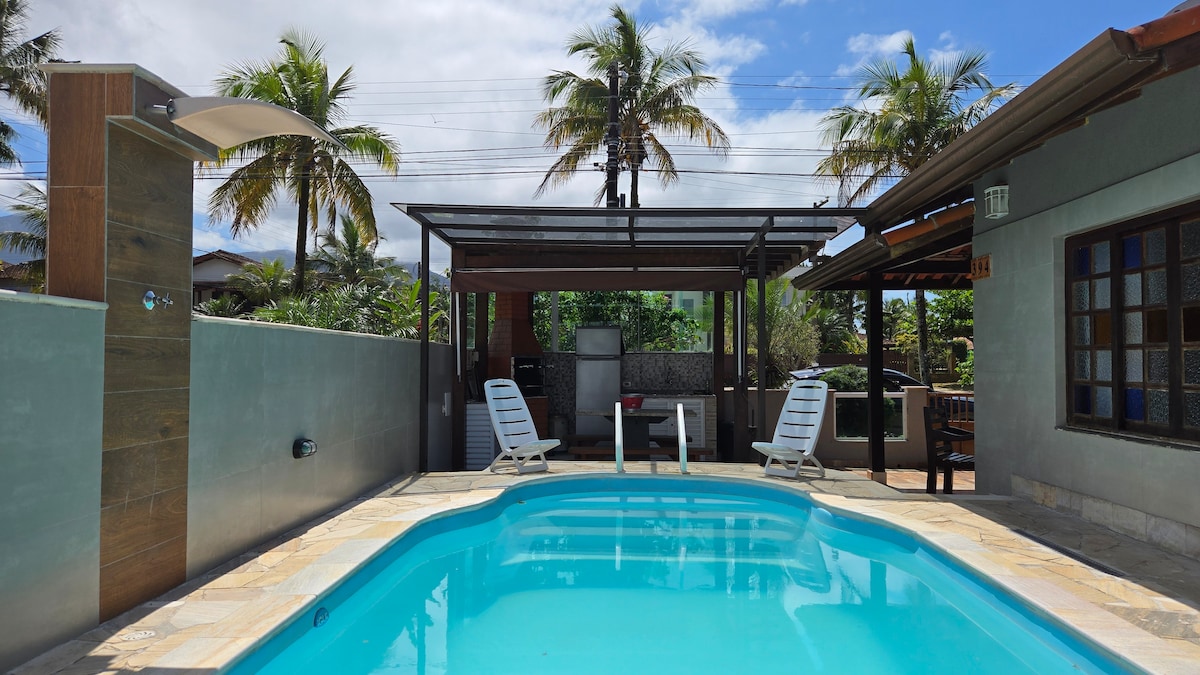This beautiful bungalow is in the heart of the Atlantic Forest, within a gated community. It is close to the sea and has a stream of crystal clear waters in the backyard. The property also has access to natural pools and small beaches. For those who like nature and comfort. Perfect for resting and recharging energy. The place has a deck with an outdoor kitchen, private bathroom, minibar, and SmartTV with lots of streaming, Alexa, and air conditioning. Pets are welcome!