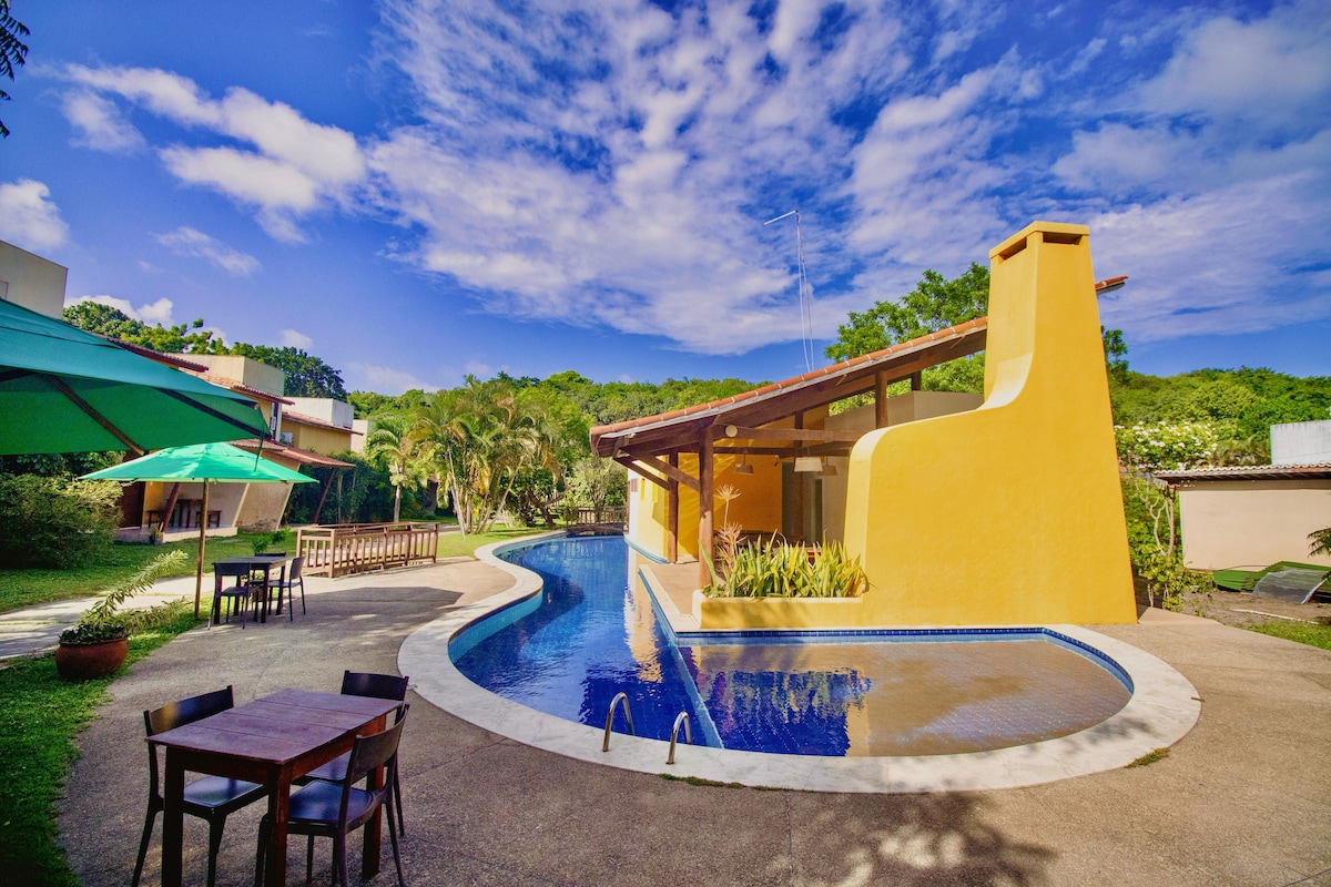 Die Casa Paz liegt ruhig und idyllisch im wunderschönen Condomínio Paraíso Tropical. Das komplett renovierte Haus liegt nur 5 Minuten zu Fuss vom vibrierenden Nachtleben mit seinen zahlreichen Bars und Restaurants sowie 7 Minuten vom Meer mit Sandstrand entfernt. Umrundet von tropischen Pflanzen, einer Terrasse und einem 14-Meter-Pool im Zentrum der 8 Häuser, ist die Casa Paz modern eingerichtet.