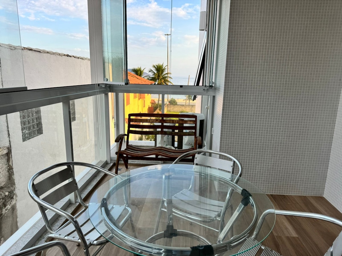 VISTA LINDA da Praia de Camboinhas. Se tropeçar na varanda vai cair na areia da praia. O apartamento fica em frente a praia, vista mar INCRÍVEL e LINDA! Basta atravessar a rua e estará na praia. VAGA NA GARAGEM. Quarto com Cama de casal e um sofá-cama na sala para uma pessoa. Ar split, SmartTV de 55", internet wi-fi com velocidade de 800 Mbps, geladeira, micro-ondas, fogão elétrico, cafeteira elétrica e utensílios no geral. LINDO E DECORADO!