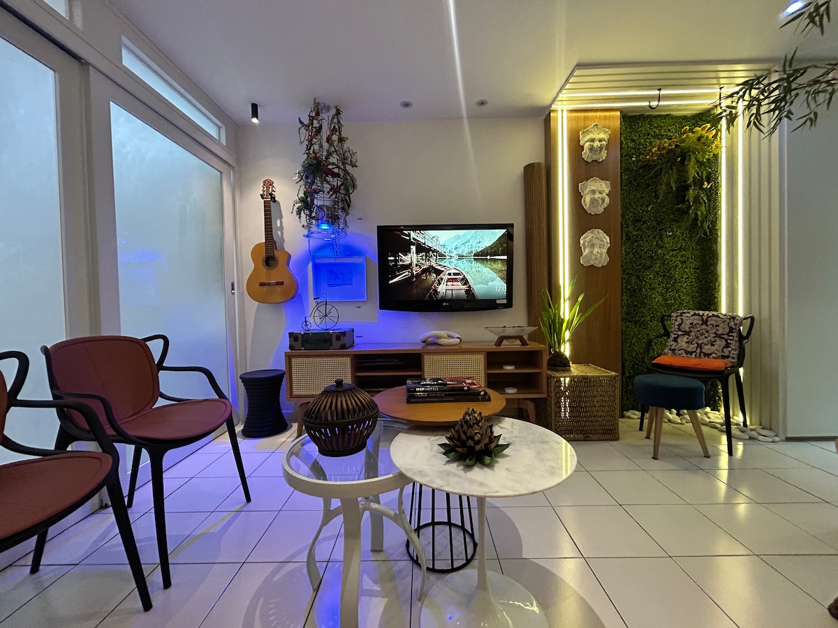 Localizada dentro do bairro de Itacoatiara, à 450 metros da praia, recebemos solteiros, casais e famílias em busca de descanso e privacidade. Situada em terreno de 450m² o Jd. Secreto possui decoração composta por móveis de Bali e piso de tábua corrida. Ampla sala de estar e jantar completas, duas suites espaçosas, piscina de 28m² com hidromassagem, sauna, cozinha equipada, mesa de sinuca, churrasqueira coberta, vaga para 2 carros e portão elétrico.