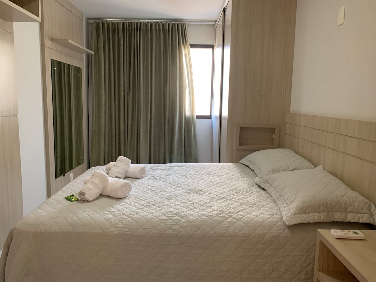 Apto, estilo loft, moderníssimo e acolhedor. Novinho. Cama Queen, ótimo chuveiro. Tudo bem planejado e decorado. Cozinha americana. Todo equipado: Ar condicionado no quarto, fogão, geladeira, micro-ondas, forno, smart tv. Toalhas e roupas de cama para os hóspedes.