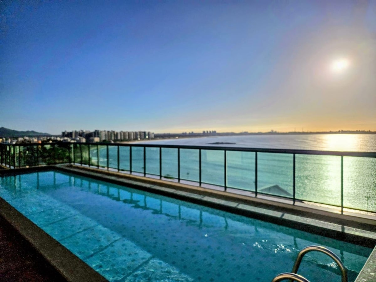 Deslumbrante vista panorâmica da cidade de Vitória, com localização privilegiada: próximo a supermercados, padarias, farmácias, bares e excelentes restaurantes. O apartamento está bem equipado e dispõe de uma adega com vinhos disponíveis para compra. O condomínio é familiar, com portaria 24 horas, e oferece uma área de lazer completa para uso dos hóspedes. Além disso, a proximidade de pontos de interesse como shopping, aeroporto, parques e praia, todos localizados entre 1 a 5 km de distância.
