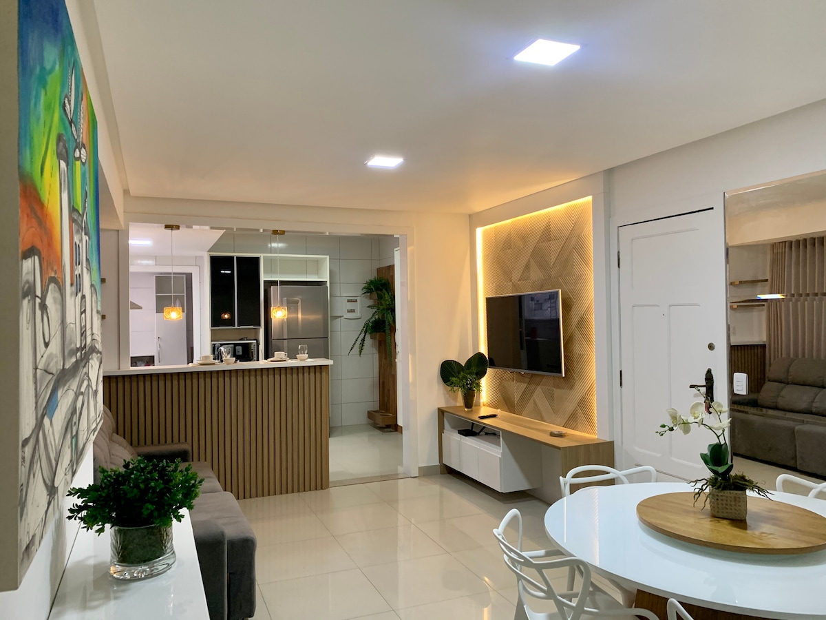 Apartamento aconchegante de 60 m2, com 1 Q, 1 WC, Sala/Cozinha e Varanda com ótima vista, 5º andar, ótima localização para turismo ou negócios. Próximo a ótimas praias, ciclovia na orla, shopping center e área de negócios. Conta com roupas de cama, banho, utensílios de cozinha, talheres, fogão/forno, microondas, sanduicheira, liquidificador, produtos de limpeza e higienização... O prédio dispõe garagem coberta e área de lazer na cobertura com academia, sauna e piscina.