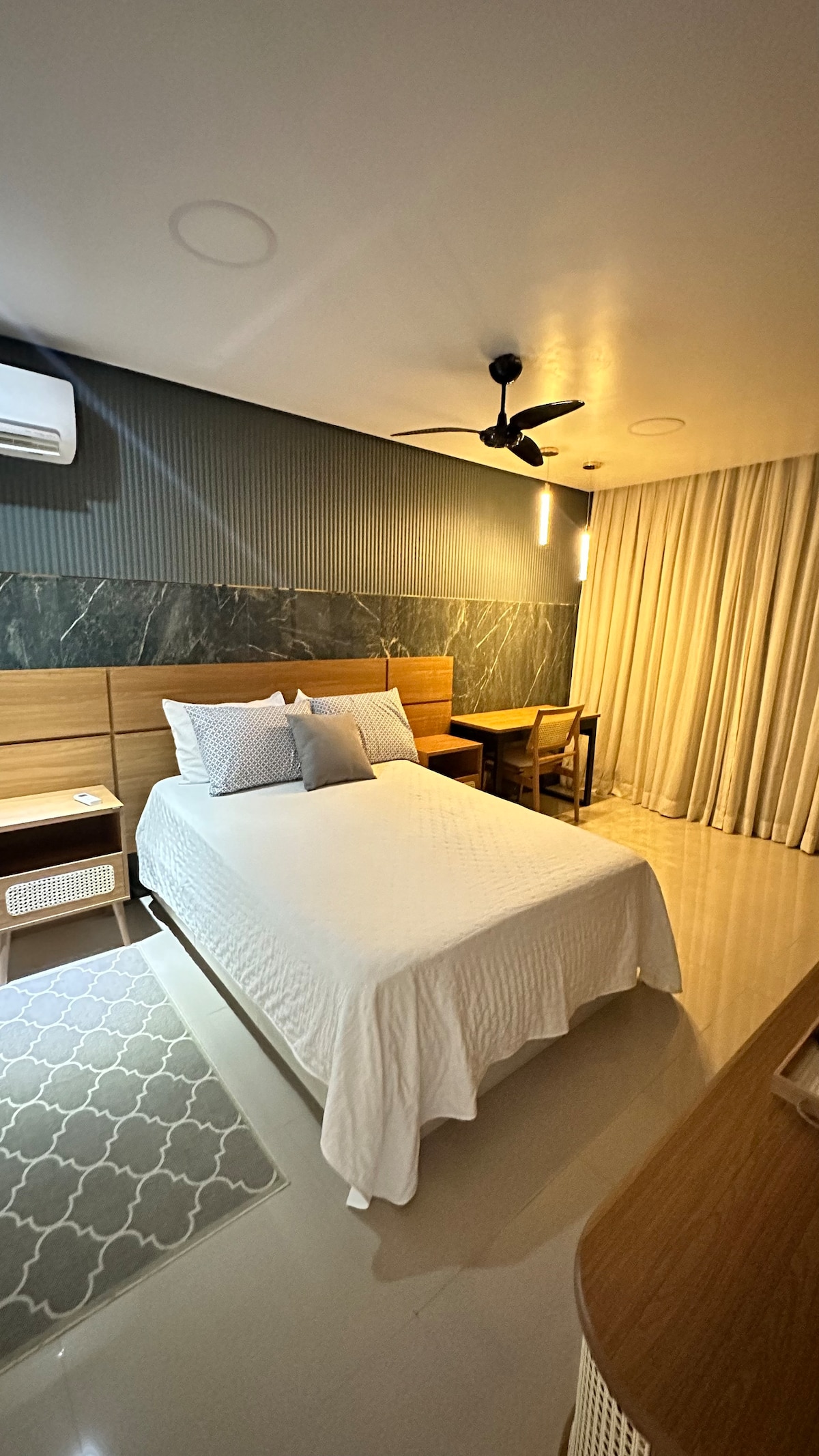 Nosso espaço é recém reformado com um estilo inspirado em elementos contemporâneos, possui uma incrível vista para o mar e ótima localização na orla. Além disso, no pavimento térreo, conta com comodidades para sua hospedagem como: mercado, padaria e farmácia.