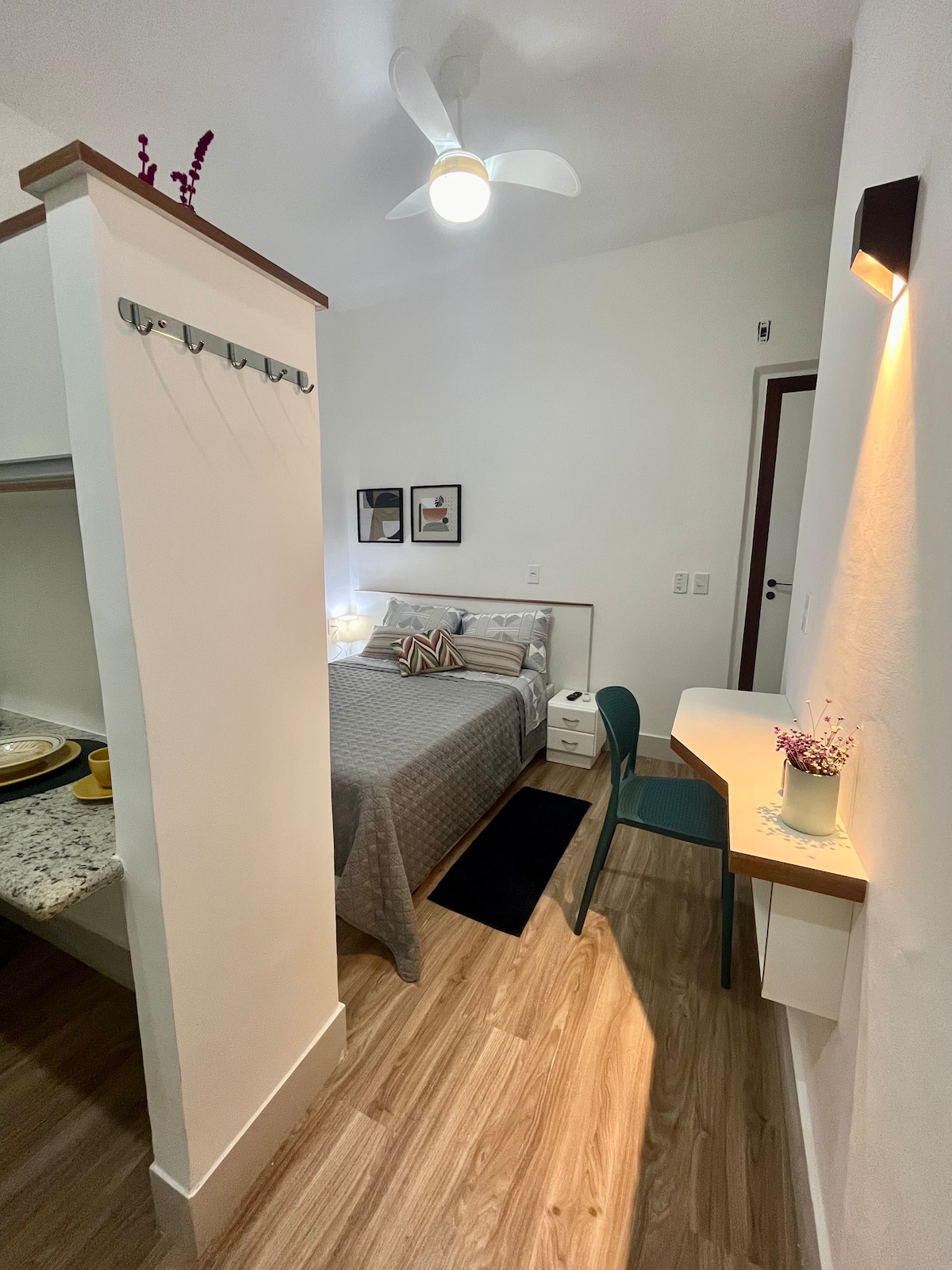 Mira 106: in the heart of Jardim da Penha, just minutes from Camburi Beach, the charming Praia do Canto neighborhood, and UFES. The spaces are well-divided and fully equipped. Your only concern will be to bring your personal belongings. Unlike a compact studio, Mira 106 is a true apartment. Here, you'll genuinely find the space and comfort you're looking for.