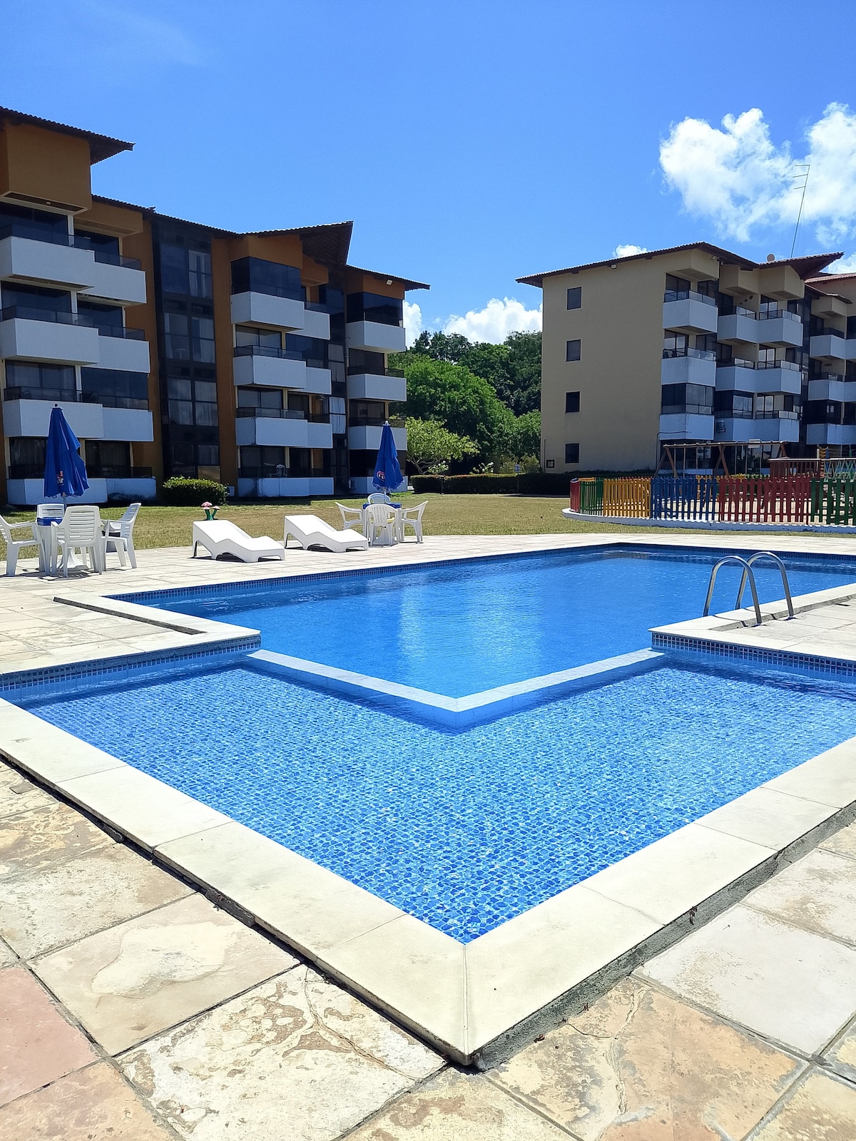 Relaxe com toda a família nesta acomodação tranquila. Com 5 piscina, 5 áreas de churrasco, salão de festa, academia, quadra, salão de jogos, parquinho, muita área verde… Não fornecemos enxoval de cama! ATENÇÃO! Fornecemos 2 toalhas de banho, de rosto e de chão. Incluso papel Higiênico COZINHA mobiliada com utensílios de uso diário. Check in e check out podem ser flexíveis!!!