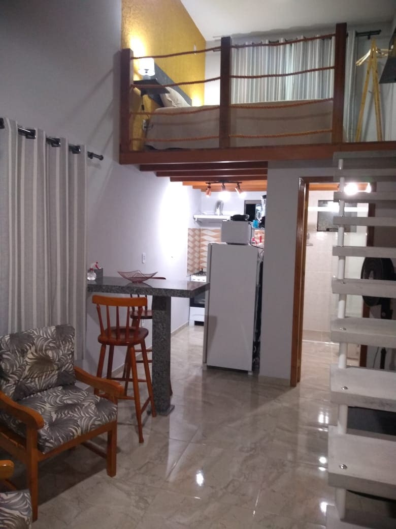 Casa ampla com 3 dormitórios. Primeiro quarto: 1 suíte com cama baixa queem, armário, ar condicionado. Segundo quarto com cama casal, armário e ar condicionado. 1 banheiro social. Segundo andar: mezanino com sofá cama e smart tv. Terceiro quarto com cama de casal queem, armário e ar condicionado. Sala e cozinha conjugada. Área externa com churrasqueira, redes, sofás rústicos para relaxar. Um banheiro sem chuveiro. Jardim, ducha externa. Estacionamento.