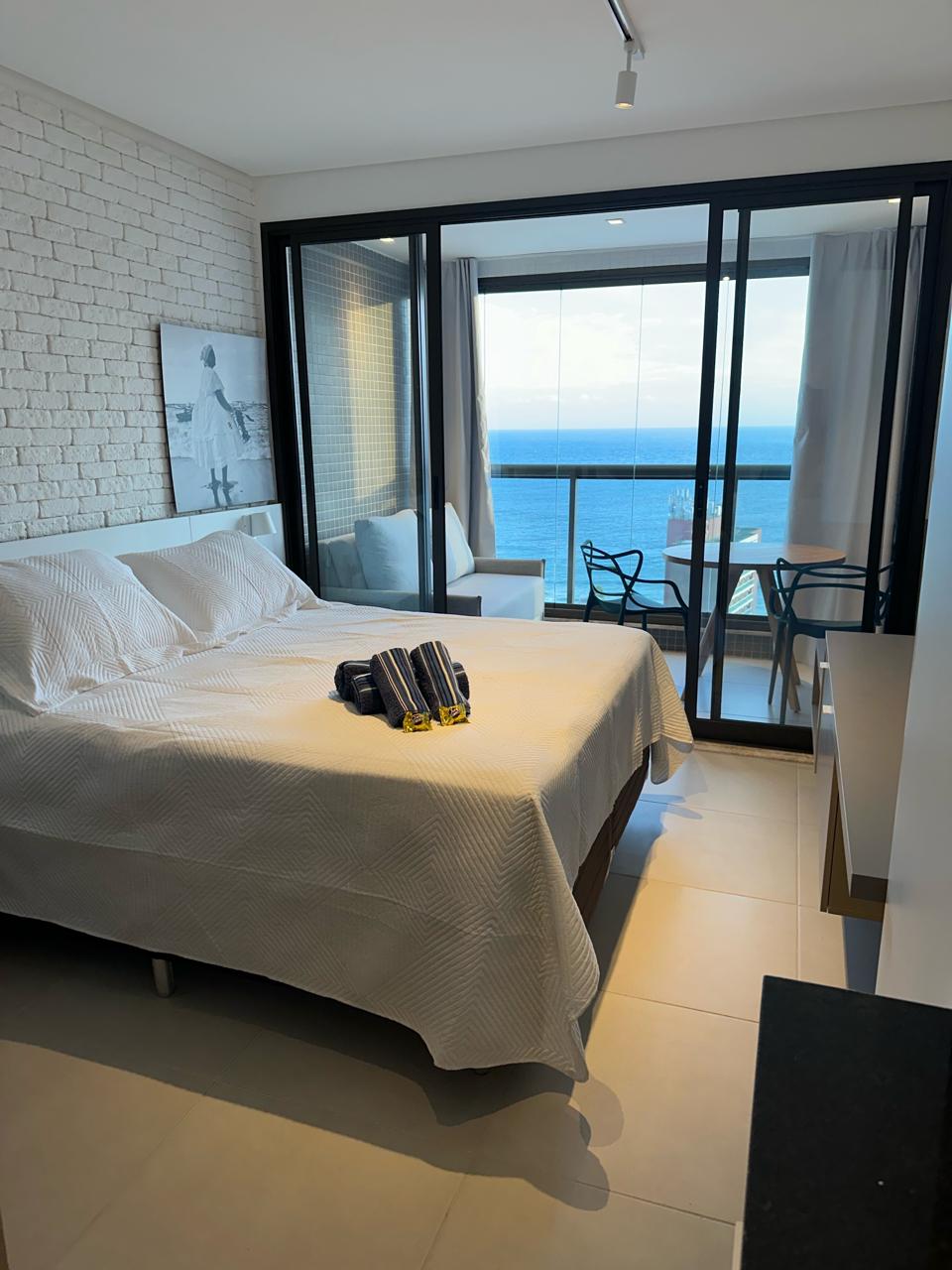 Studio moderno e aconchegante (36m²) com cama de casal, sofá-cama, smart TV, ar-condicionado, cozinha equipada, banheira e Wi-Fi rápido. Localizado no Corredor da Vitória, bairro mais nobre de Salvador, no Sol Victoria Marina (hotel 4 estrelas), com acesso ao píer privativo, com toboágua, além do restaurante Mahi Mahi, à beira-mar. Na rua tem opções de museus, mercados, cinema e academias. !Acesso ao píer gratuito apenas para hóspedes. !Apto com vista para o corredor da vitória.