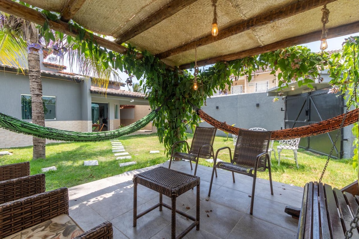 Se você busca um ambiente leve, familiar e bem próximo à praia, acabou de encontrar! Sossego e aconchego em 2 andares e ar condicionado Split em toda casa. Piscina linda e convidativa à sua frente com mesas e cadeiras de sol, além de sauna para relaxar no final do dia e pós praia. Vizinhança tranquila e prestativa, se sentirá morando num agradável bairro, com segurança e infra-estrutura. Te convido a ser um dos nossos primeiros hóspedes e desfrutar do nosso recanto familiar. =)