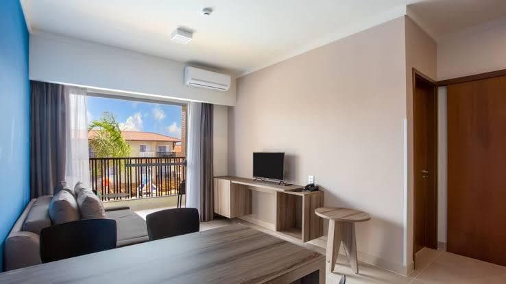 📅 06 a 13/09/2026 (7 noites Hospedagem no Ondas Praia Resort, na Praia do Mutá (pé na areia). ✨ Apto para até 5 pessoas: ✔️ Quarto com cama de casal + solteiro e ar-condicionado ✔️ Sala com sofá-cama, smart TV e ar-condicionado ✔️ Cozinha (micro-ondas e frigobar) 🏖️ Estrutura do resort: ✔️ Piscinas (adulto e infantil) e muito mais Informações: • Alimentação não inclusa (restaurante no local) • Envio prévio de dados para check-in • Reserva mediante pagamento