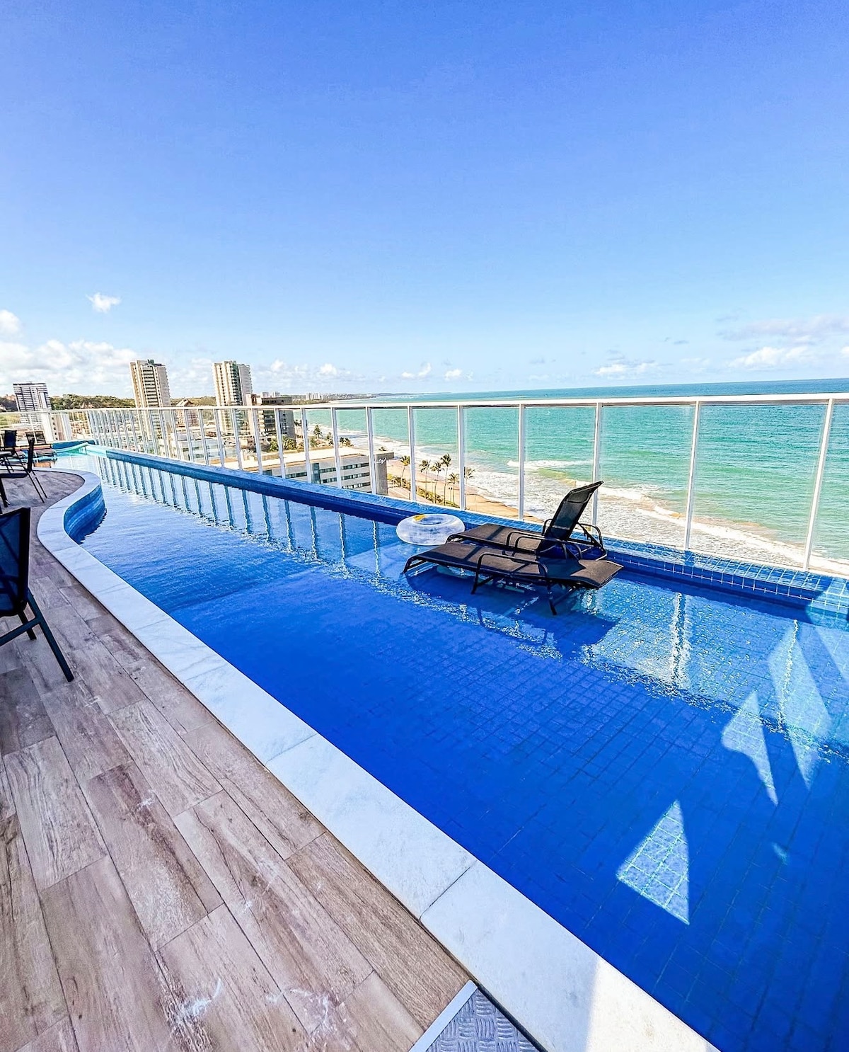 Desperte com uma vista infinita e panorâmica do mar em Maceió! Localização imbatível! Estamos a poucos passos da nova Roda Gigante de Maceió! Pé na areia, de frente às piscinas naturais, Pavilhão do Artesanato e ótimos restaurantes. Studio completo com cama queen, cozinha equipada e sacada com vista do mar. Condomínio com piscina de borda infinita no rooftop, sauna, academia, sala de jogos e SPA.