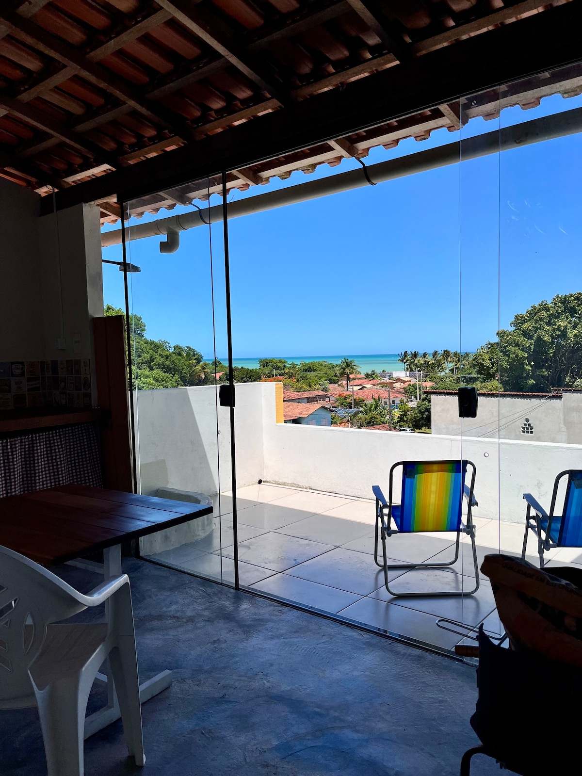 O Chale Japara, está localizado na Praia do Centro de Cumuruxatiba, pé na areia, na Villa Mar Cumuru casas e chalés Espaço compacto, aconchegante e com uma vista privilegiada para o Mar Com uma cama de casal, cozinha equipada , PEQUENO banheiro e acesso privativo a praia, ar-condicionado. A varanda da acesso ao Chalé Japara e ao Moreira, porém o Chalé Japara tem opção de colocar a mesa nesta varanda com esta vista privilegiada.