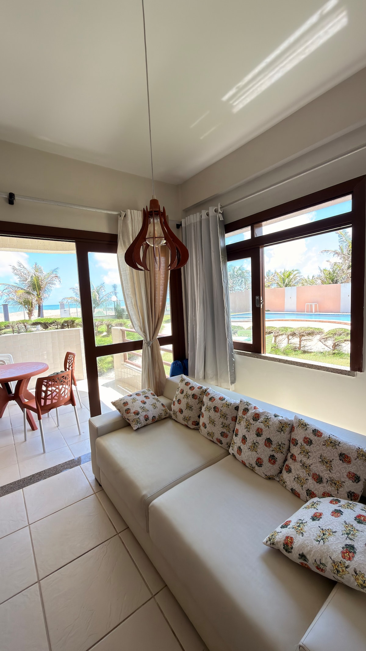 Desfrute do conforto deste Apt. com uma pequena piscina aquecida e hidromassagem, varanda maravilhosa! Dois quartos, sendo uma suíte com uma cama queen e uma cama Solteiro. Uma Demi suite com uma cama casal e uma cama solteiro, ambos os quartos possuem armários e banheiros. Sala charmosa, cozinha equipada com todos utensílios necessários. Terraço na cobertura do condomínio, com vista incrível, o melhor mirante para o por do sol de Flecheiras, churrasqueira para desfrutar com a família e amigos!