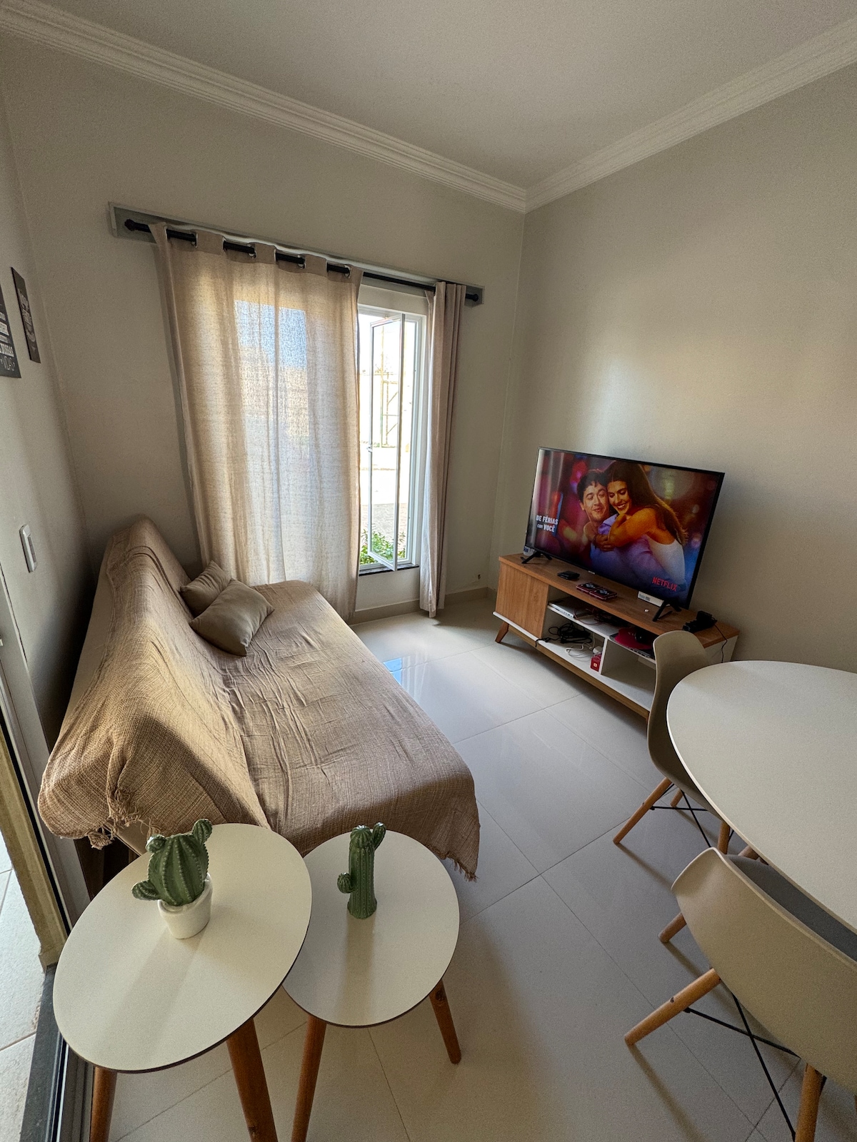 Desfrute do conforto deste Apt. com uma pequena piscina aquecida e hidromassagem, varanda maravilhosa! Dois quartos, sendo uma suíte com uma cama queen e uma cama Solteiro. Uma Demi suite com uma cama casal e uma cama solteiro, ambos os quartos possuem armários e banheiros. Sala charmosa, cozinha equipada com todos utensílios necessários. Terraço na cobertura do condomínio, com vista incrível, o melhor mirante para o por do sol de Flecheiras, churrasqueira para desfrutar com a família e amigos!