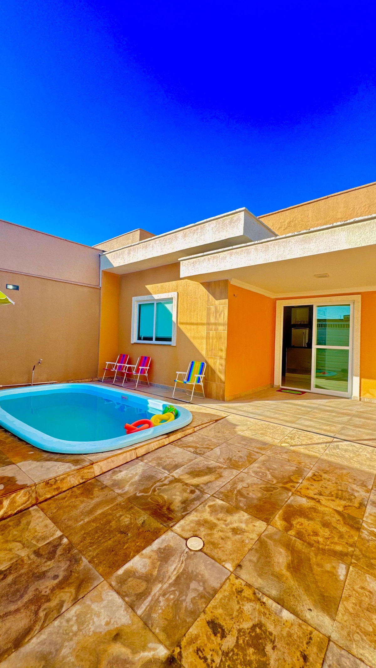 Leve toda a família a este ótimo lugar com muito espaço para se divertir. Casa toda mobiliada, com TV a cabo e Wi-Fi 3 quartos, 2 com suítes climatizadas,cada quarto com uma cama de casal e duas cama de solteiro, e 1 com suíte climatizado, com uma cama de casal, no restante da casa, a espaço para armar 10 redes!! Limite de 10 pessoas Casa frente ao mar, com o melhor banho de mar, em frente onde se forma as piscinas naturais !! E a 600 metros do centro da cidade