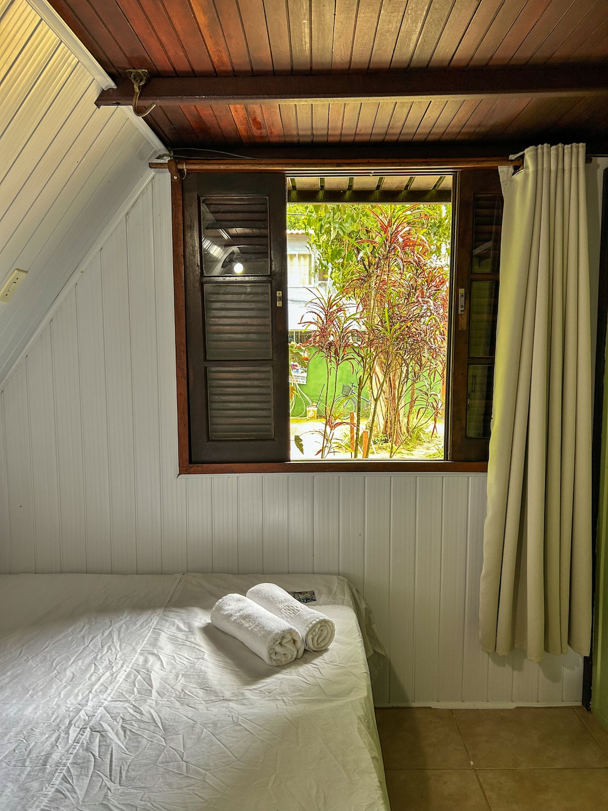 Treetop Chalet provides elegant and traditional accommodation, situated within beautiful Atlantic rainforest in Araçatiba, Ilha Grande. This private and secluded location is 150m from the nearest beach (Praia da Cachoeira). It is completely self-contained, with full kitchen, private bathroom and a deck with breathtaking view of the trees towards the sea. NOTE: This property (including the chalet and main house) has just been completely redecorated.