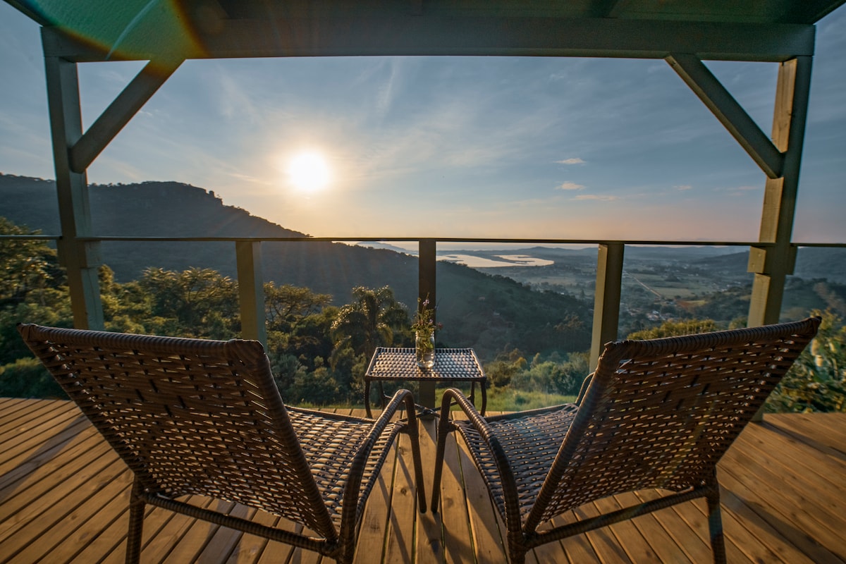 Desfrute do refúgio EXCLUSIVO E PRIVATIVO com ofurô AQUECIDO, em meio à um bosque com VISUAL espetacular do pôr-do-sol na Lagoa Encantada . As suítes possuem ar condicionado, TV e Wi-fi 600MB Ofurô aquecido e com hidromassagem. Quiosque Espaço Gourmet completo. São duas suítes, uma com uma cama de casal e a outra com duas camas de casal, não alugamos separadamente . Próximo da praia e do centrinho. Acesso à Praia por trilha ou escadaria exclusiva, um belo exercício para o corpo e alma.