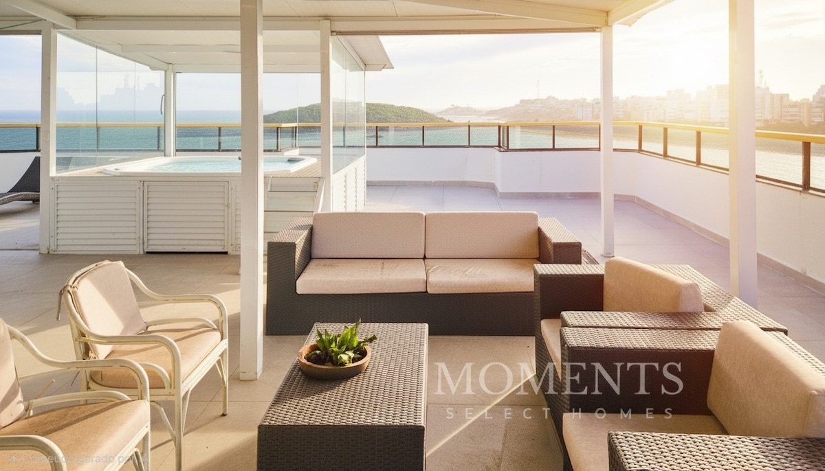 Cobertura duplex com jacuzzi e duas varandas: uma com vista para o mar e outra com vista para a lagoa! O Mykonos Paradise fica localizado na badalada Praia de Bacutia, mas é um refúgio com uma energia à parte. A rede suspensa da sala com vista pro mar proporciona uma experiência única. Com decoração mediterrânea, nosso espaço é totalmente equipado para o seu conforto, com WiFi em todos os cômodos e Smart TV em todos os quartos. Prédio novo, seguro, com 4 vagas na garagem.