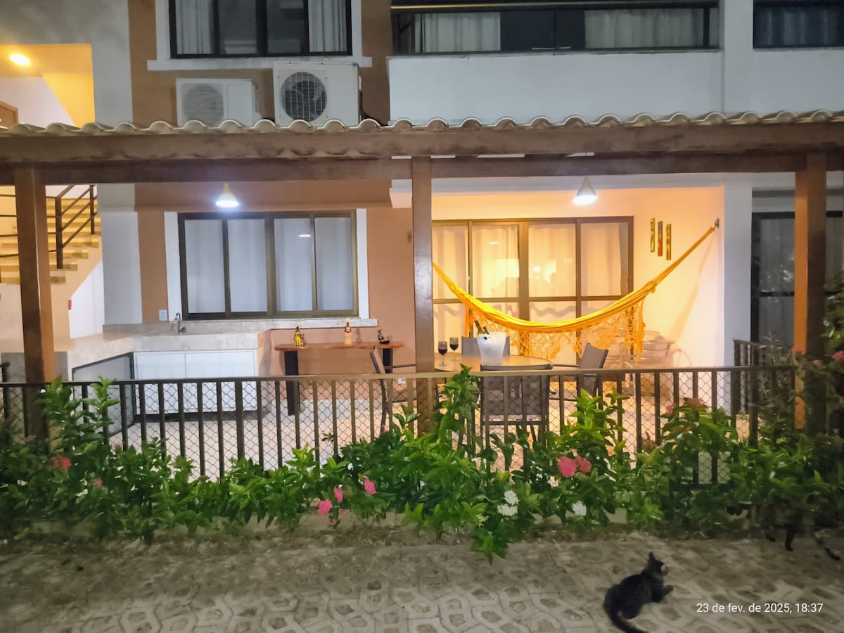 🏡 Apto duplex, novo, confortável e completo no centro da charmosa Vila de Praia do Forte, a 100m da Praia do Portinho e próximo ao Projeto Tamar, piscinas naturais, bares e restaurantes. Possui suíte com cama queen, lavabo, cozinha equipada, ar-cond. em todos os ambientes e sofá-cama. ⚠️ Importante: 🚫🚗 Nossa rua é exclusiva para pedestres (não acessível de carro). 🅿️ Vagas rotativas zona azul e estacionamento particular a 2–3 min a pé.