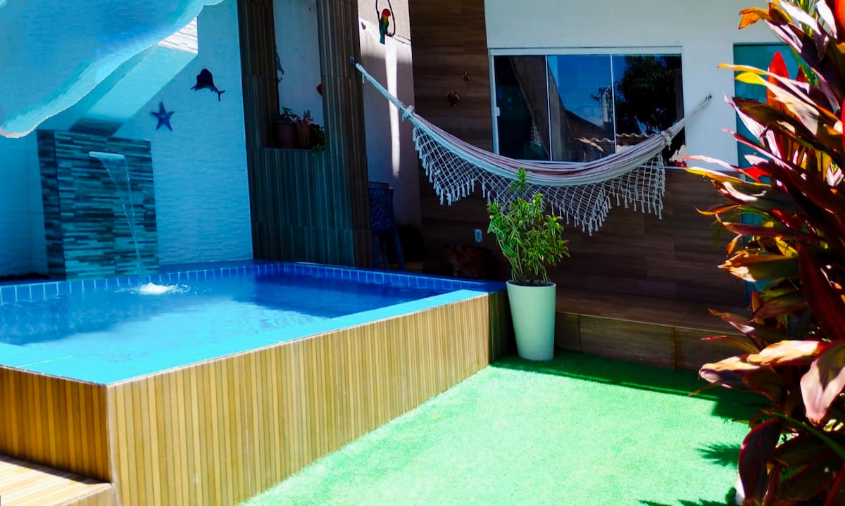 House 2 min walk to a beach with Blue Flag; 158 m 5 en-suites with AC, closets and 100% blackout for 10 (4 double and 2 twin beds) Swimming pool, BBQ, garden, dishwasher Daily pool and house cleaning included, except on Sundays HS Internet 500 mb Community security w/ cameras and 24/7 patrol; access to the house monitored Bike path with ocean view, sports courts Max 10 guests older than 2 years old Energy & water consumption covered up to R$40/day. Excess will be charged on checkout.