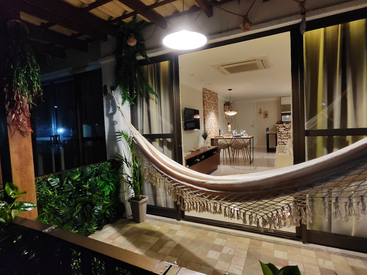 “NortDestino: Your destination in the Northeast.” Renovated apartment (A-004) in the heart of Guarajuba. A unique and peaceful place, decorated to create a sensory experience that reflects the Mediterranean/boho style. We are a family and want to provide our guests with a visual and emotional experience of calm that invites them to disconnect and enjoy the space. On the lakefront with a large green area and infrastructure. In the best location, close to the best beaches, restaurants, etc.