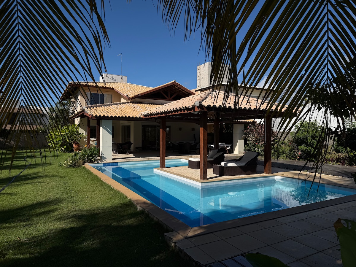 House 2 min walk to a beach with Blue Flag; 158 m 5 en-suites with AC, closets and 100% blackout for 10 (4 double and 2 twin beds) Swimming pool, BBQ, garden, dishwasher Daily pool and house cleaning included, except on Sundays HS Internet 500 mb Community security w/ cameras and 24/7 patrol; access to the house monitored Bike path with ocean view, sports courts Max 10 guests older than 2 years old Energy & water consumption covered up to R$40/day. Excess will be charged on checkout.