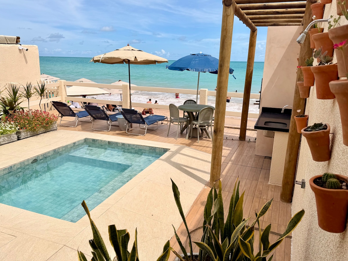 Casa duplex pé na areia em Ipioca, com piscina Igui privativa, churrasqueira e vista para o mar. São 3 quartos climatizados com amplos armários (1 suite), 3 banheiros, sala, varanda e espaço home office. Decoração elogiada com peças assinadas, enxoval de qualidade e muito conforto. Cozinha completa equipada com todos os utensílios, incluindo AirFryer. Smart TV, Wi-Fi rápido e garagem coberta para 1 carro. Praia paradisíaca e sossegada, com piscinas naturais acessíveis a pé ou de barco.