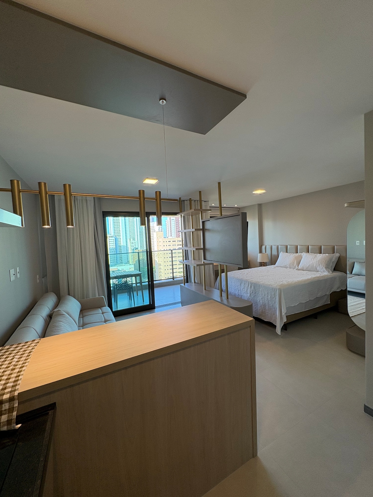 Studio decorado com alto padrão e pensado para curtas ou longas estadias. Ideal para casais ou viajantes solo, seja a lazer ou trabalho. Acomoda até 2 pessoas com todo o conforto necessário. Localizado a apenas 600 metros da beira mar, em uma rua tranquila e silenciosa. Tudo por perto: mercados, farmácias, cafés e restaurantes a 10 min de carro. Aproveite o melhor custo-benefício para se hospedar próximo a uma das orlas mais bonitas do Brasil, com fácil acesso às principais áreas da cidade.