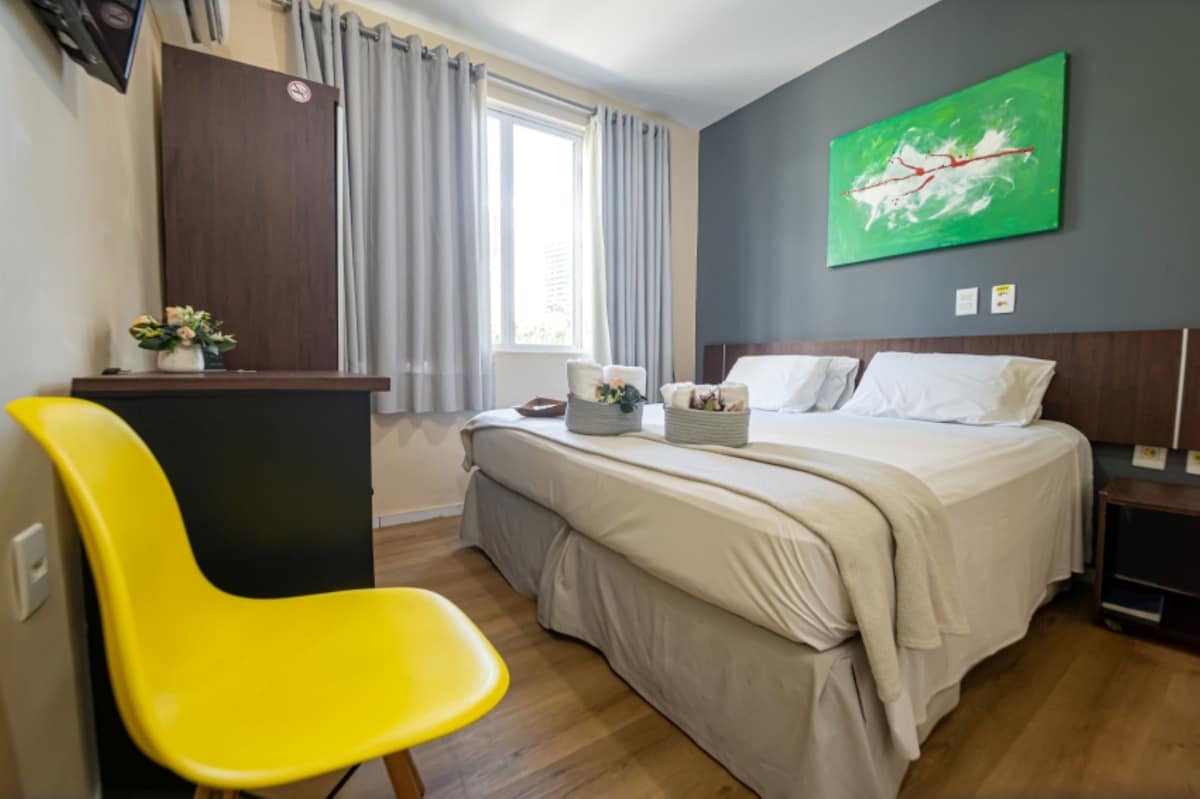Nosso apto foi totalmente reformado, com tudo novo de bom gosto e boa qualidade, com roupas de cama e banho impecáveis; cozinha completa como todos os acessórios , maquina de lavar, ferro de passar, secador geladeira e micro ondas . 01 quarto - suíte , cama king - sofá cama, sala e duas TVs a cabo, AR Condicionado ( até 4 pessoas), com acessos as áreas comuns e café da manhã opcional ( pego no local). Segurança 24H e excelente localização.