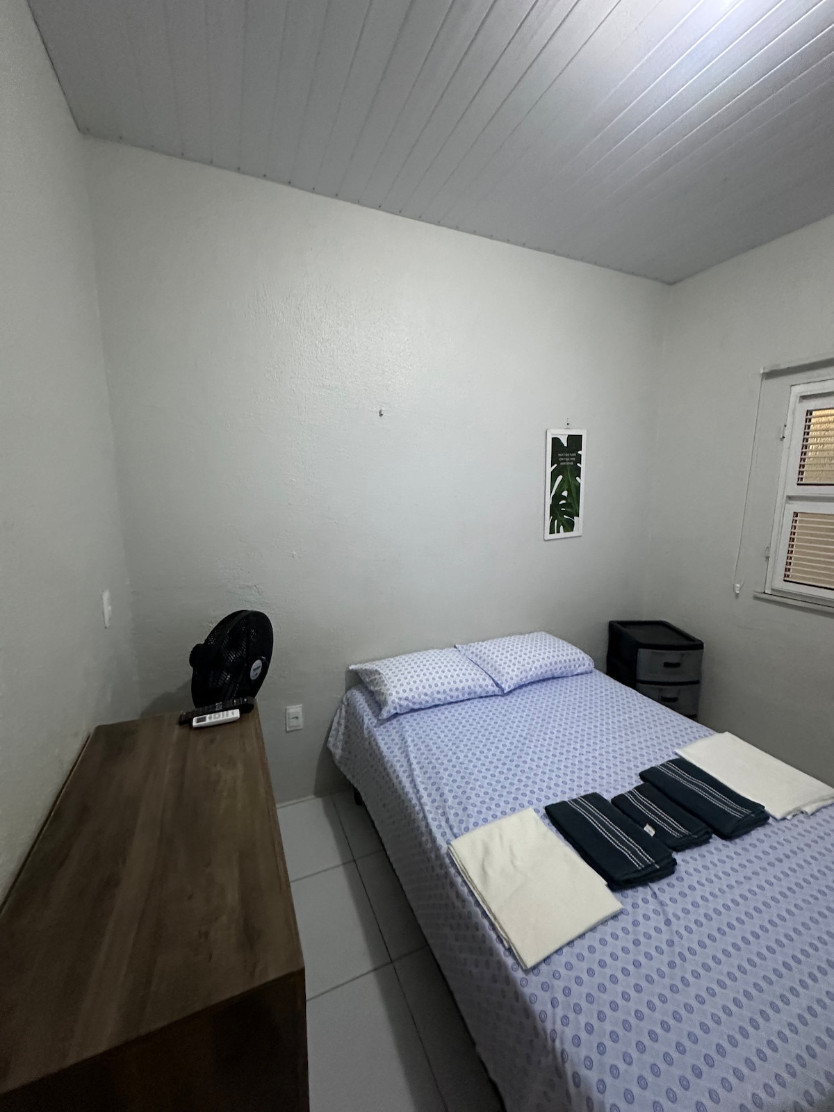 2 cama de solteiro e 1 cama de casal; Ventilador em cada quarto; 1 banheiro; cozinha completa: micro-ondas , sanduicheira, fogão e geladeira. Localidade central para atração turística: Vila do mar e Beira Mar Hóspedes no máximo: 04 pessoas.