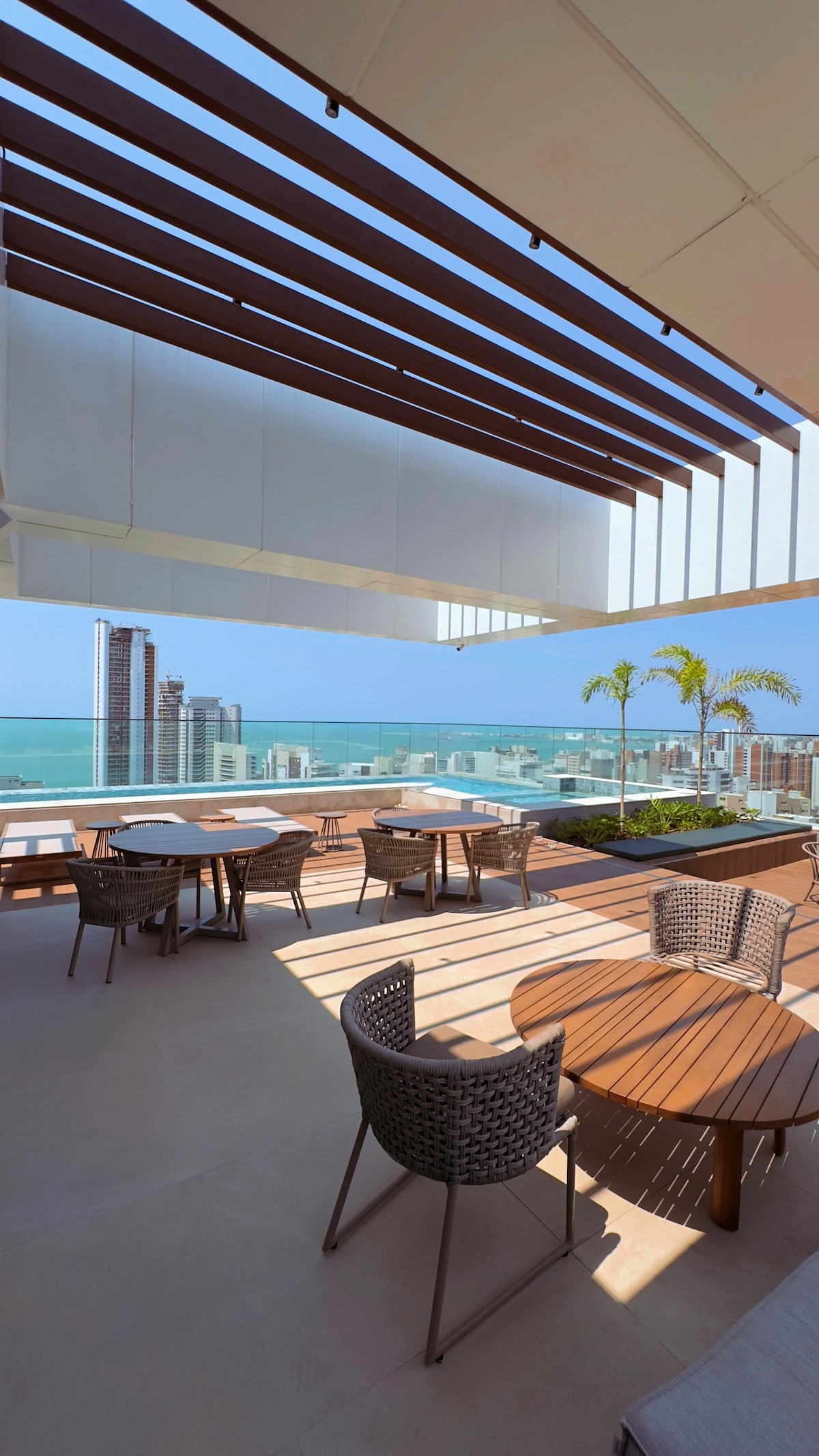 Aproveite a experiência de espaço novo, aconchegante em prédio moderno, localização central na Praia de Iracema. Possui sala, cozinha, quarto com ar condicionado, varanda e banheiro. 2 smart TVs. Na cozinha é possível a preparação de alimentos e boas louças. Da espaçosa varanda você pode admirar a vista panorâmica do mar e do pôr do sol. O apartamento dispõe de um lugar de garagem, existe também um posto de carregamento de veículos, academia, sauna, hidromassagem, piscina e porteiro 24 horas.