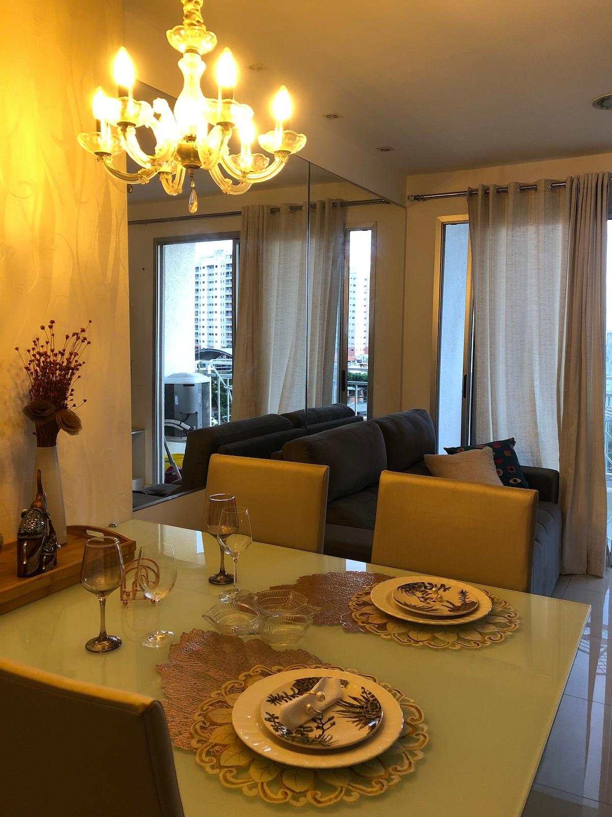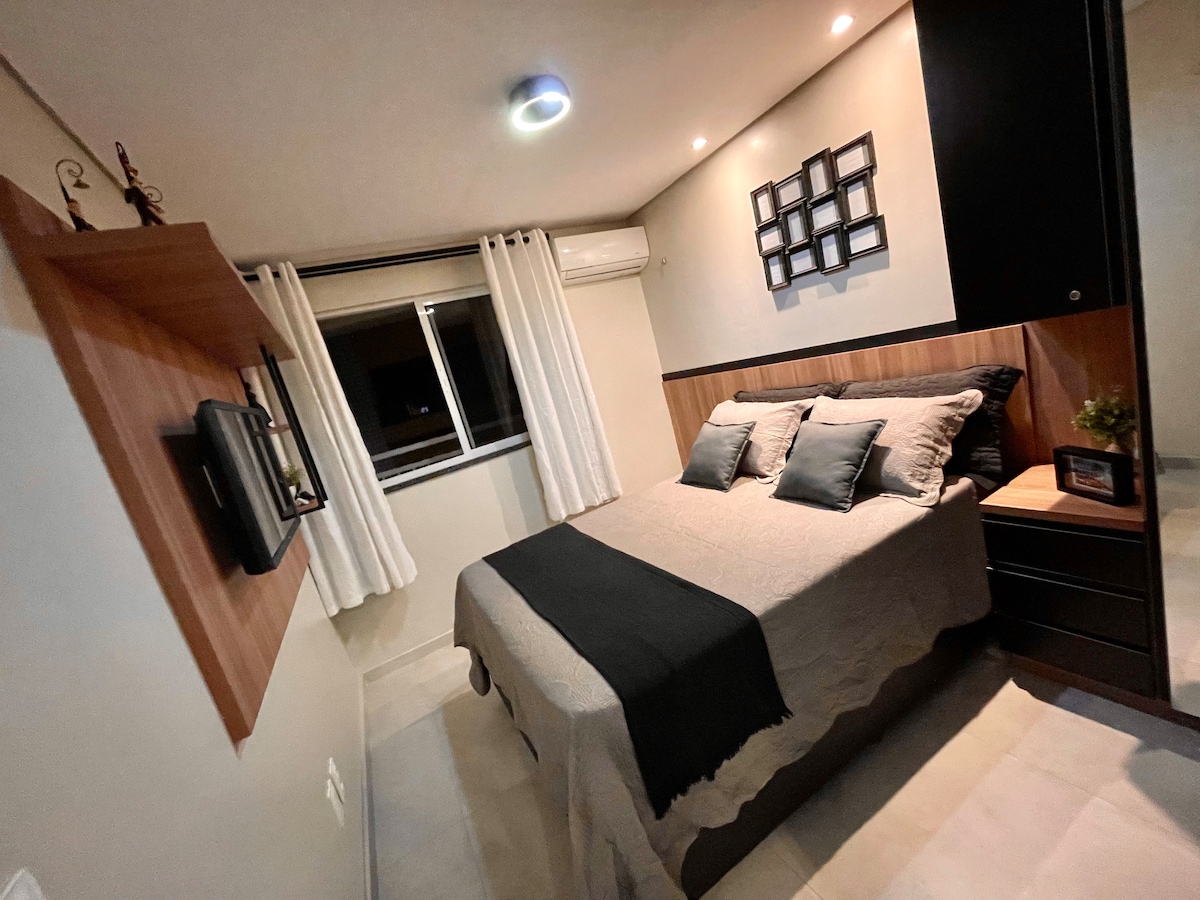 Stylish modern apartment at ¨Trapiche¨ building on Beira Mar Av. (the famous boulevard right at the beach) -Next to 5* Gran Marquise Hotel A perfect stay for families or couples in a lively neighborhood with many restaurants and activities It has three spacious bedrooms with AC (being 2 suites) - large living room Fully equipped for comfortable stay It has lots of natural light and is well ventilated. Included free of cost: -Outdoor swimming pool (with barbecue space) -Gym -1 parking spot