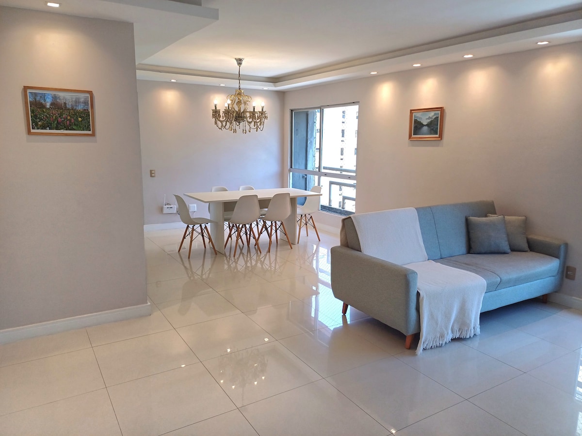 Stylish modern apartment at ¨Trapiche¨ building on Beira Mar Av. (the famous boulevard right at the beach) -Next to 5* Gran Marquise Hotel A perfect stay for families or couples in a lively neighborhood with many restaurants and activities It has three spacious bedrooms with AC (being 2 en suites) - large living room Fully equipped for comfortable stay It has lots of natural light and is well ventilated. COMPLEX INCLUDES: 🔹Outdoor swimming pool (with barbecue space) 🔹Gym 🔹1 parking spot