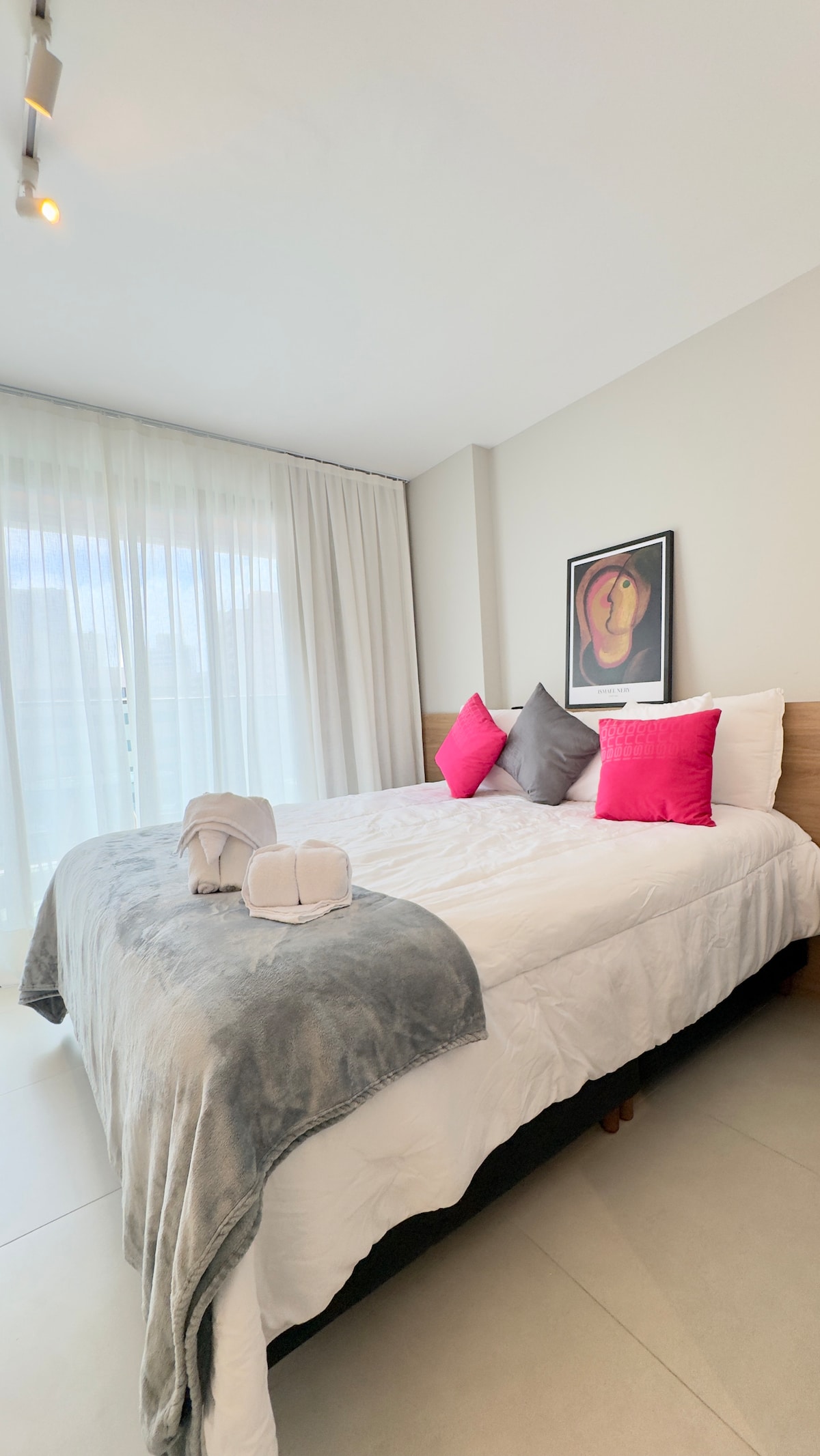 Stylish modern apartment at ¨Trapiche¨ building on Beira Mar Av. (the famous boulevard right at the beach) -Next to 5* Gran Marquise Hotel A perfect stay for families or couples in a lively neighborhood with many restaurants and activities It has three spacious bedrooms with AC (being 2 suites) - large living room Fully equipped for comfortable stay It has lots of natural light and is well ventilated. Included free of cost: -Outdoor swimming pool (with barbecue space) -Gym -1 parking spot