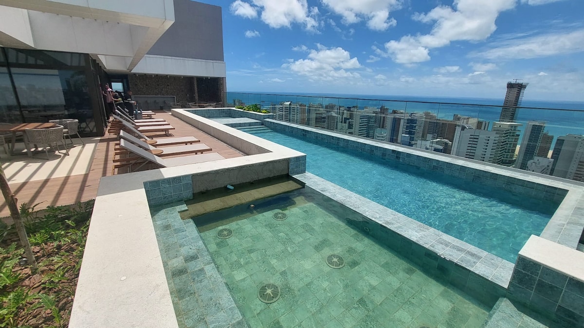 Apartment in the Helbor My Way Building, located in front of Fortaleza's Beira-Mar, Apartment is on the 13th floor, has 1 parking space. You can do everything on foot, close to the car rental office, seaside market, restaurants, bars, pharmacies, supermarket and exchange offices. Clean and sanitized standard apartment in the best area of the city. There is no extra energy fee!