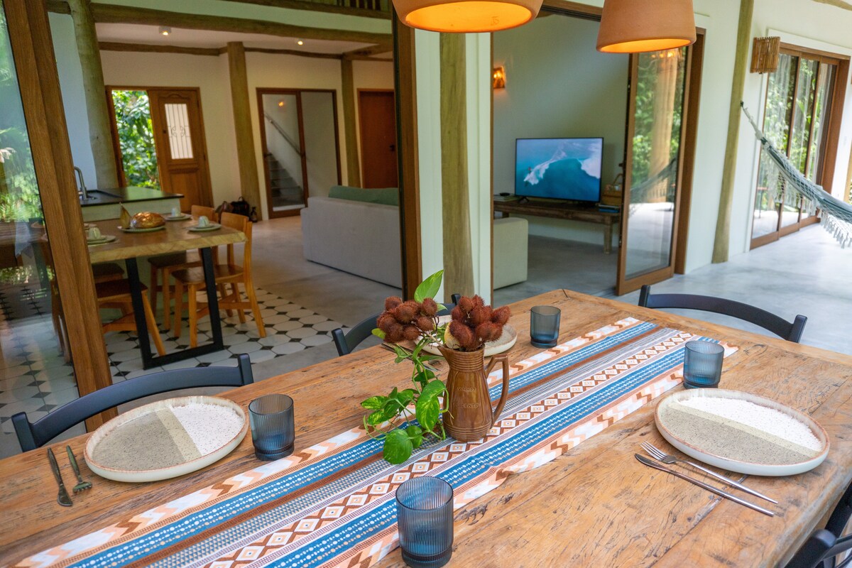 Relaxe com sua família nesta hospedagem ecológica e tranquila, após surfar e aproveitar o dia em nossa praia maravilhosa de Itamambuca em Ubatuba. Ideal para viagens home office e para a prática de esportes como o Surf. Nossa INTERNET é de 600mega. Temos aula particular de Surf e alugamos pranchas