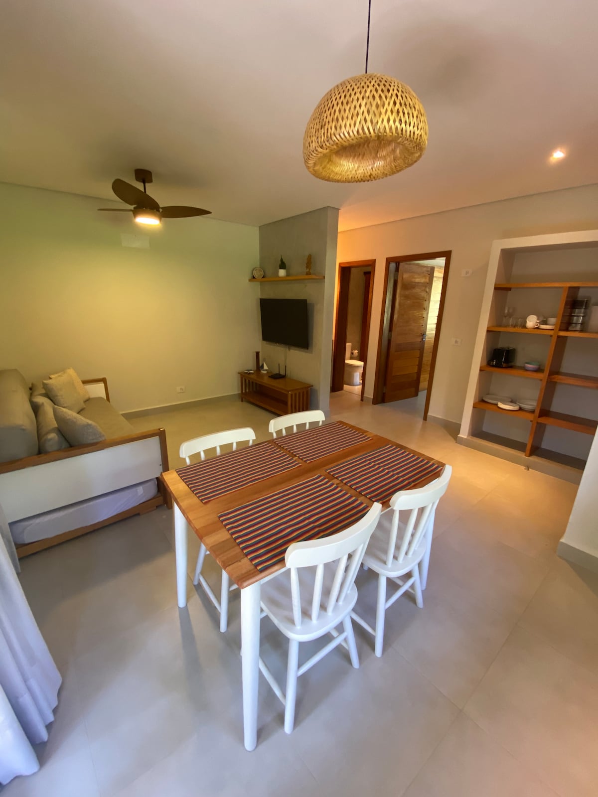 Charmosos estúdios self catering na linda praia do Prumirim. Entrada independente, pátio privado, cozinha totalmente equipada, cama queen size de alta qualidade, sala de estar confortável. Tudo projetado com qualidade, conforto e estilo. Grandes janelas panorâmicas que vão fazer você se sentir entre as copas das árvores! Este é um lugar mágico para quem procura uma fuga romântica à beira-mar conectando-se à natureza sem comprometer seu conforto. Tudo meticulosamente limpo, sanitizado e seguro!