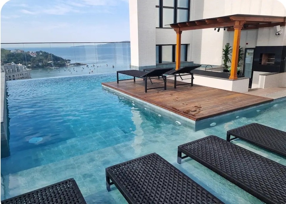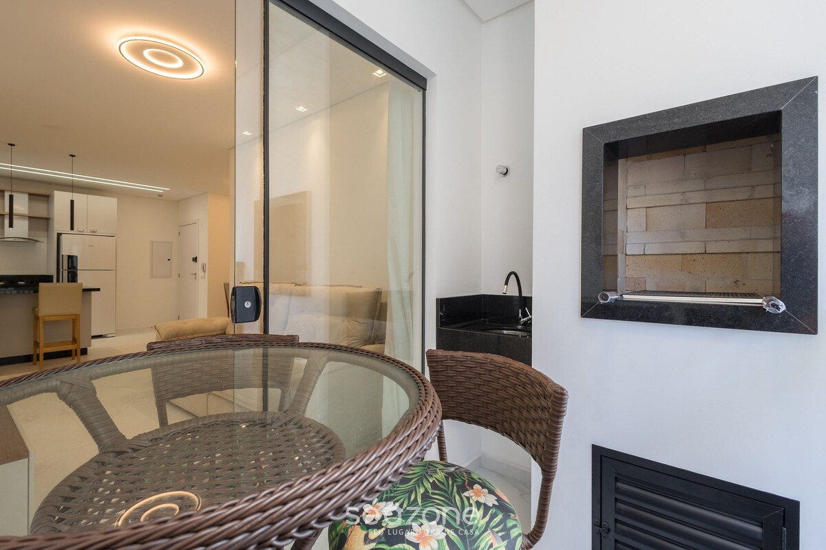 Cada detalhe do apto foi pensado para transmitir a leveza, elegância e aconchego do mar Mediterrâneo. Tons suaves, texturas naturais e iluminação planejada criam o ambiente ideal para dias inesquecíveis. 2 suítes, com ar condicionado e TV 4K. Sala de jantar e estar com TV 65". Cozinha equipada para jantares memoráveis. Sacada gourmet com churrasqueira e vista para o mar. No Rooftop, Piscinas aquecidas, perfeitas para banhos relaxantes até mesmo no inverno e academia totalmente equipada.